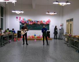 12月23日晚,外国语系双旦晚会在图书馆317举行,出席本次活动的嘉宾有辅导员张坤,班主任姜欣彤、曹婧老师、王国潇老师。