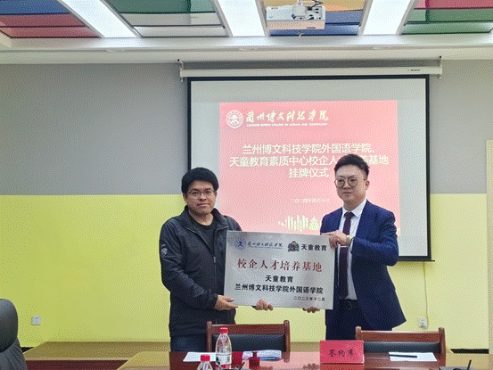 我校外国语学院与兰州天童教育素质成长中心共建就业实习基地,将是开启未来校企合作的新篇章,双方在协同育人,提高人才培养质量,谋求更大的合作空间方面奠定了坚实基础。