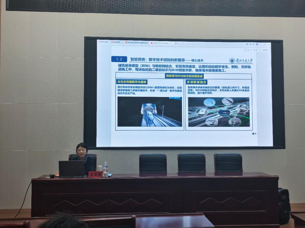 讲座伊始,李翠然教授指出,在高速移动、开放传输的高铁场景下,海量乘客隐私数据的无线传输正面临严峻的安全威胁。如何实现可靠且“隐蔽”的通信,已成为当前铁路无线通信领域的研究热点与难点。李教授介绍,智能超表面作为一种人工可编程的电磁表面,被誉为“环境的智能控制器”,能够以低成本、低功耗的方式主动塑造无线传输环境,为破解这一难题提供了革命性的思路。她将这一技术生动地比喻为在复杂的通信环境中,为信号建立起一条“看不见的专属通道”。