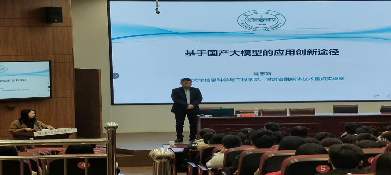 为拓宽师生学术视野,紧跟人工智能技术前沿,11月3日下午,我院特邀兰州大学信息科学与工程学院马志新教授在北校区大报告厅开展"生成式人工智能(AIGC)引领高质量发展"专题讲座。25级计算机科学与技术、电子信息专业全体同学及学生党员工作站同学参加了本次讲座,相关班级班主任及学生组织负责老师一同出席。