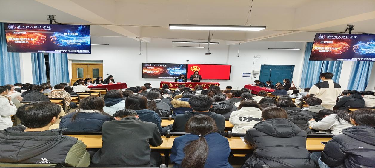 2025年12月10日19:30,信息科学与工程学院团委举办的首届“明辨爱之维度,笃定青春航向”辩论赛决赛在西T2如期举行,围绕“爱是电光石火的刹那倾心,还是细水长流的同频共振”的辩题,在主持人范金霞以富有感染力的开场白,清晰介绍辩题背景与赛事规则的氛围中拉开序幕,带领全场观众走进这场关于“爱的本质”的思想交锋。