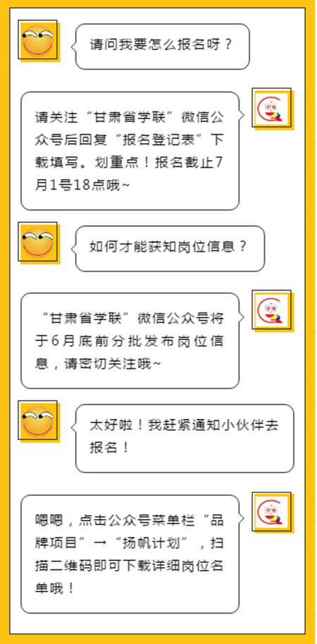 加强组织领导。“扬帆计划”是共青团发挥组织优势和育人功能,整合各方资源,帮助大学生储备工作经验,提高就业能力的有效举措。各市(州)、高校团委要高度重视,明确专人负责,结合实际情况,确保工作落到实处、取得实效。