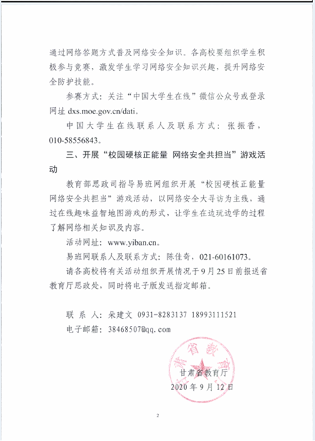 关于组织开展2020年国家网络安全宣传周活动的补充通知