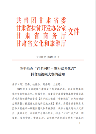 关于举办“百名网红·我为家乡代言”抖音短视频大赛的通知