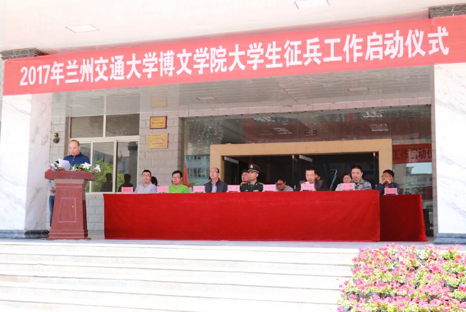 最后,兰州交通大学博文学院刘彦凯副院长做总结性的发言,刘院长从不同的角度向大家介绍了参军入伍的意义,并向全体同学解读了国家对大学生入伍享有的相关优待政策,要求辅导员、班主任启动仪式结束后,组织学生召开主题班会,认真传达会议精神,进一步认清形势,明白任务,立足本职,确保高标准、高质量地完成我院2017年征兵工作。
