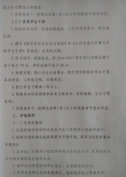 兰州交通大学博文学院关于开展2016-2017学年先进班集体、三好学生、优秀学生干部评选工作的通知