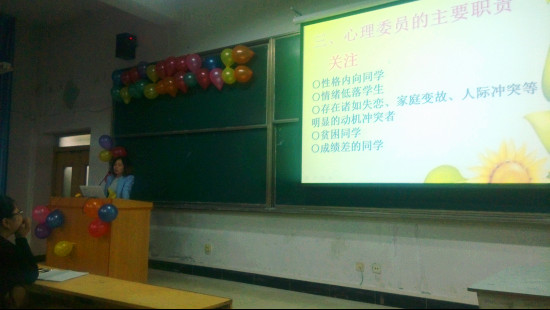 本次讲座主要围绕大学生心理健康的标准、大学生常见的心理问题展开,同时就心理委员的工作职责以及如何在班内开展工作做了细致讲解,并要求各班心理委员于双周周二上交班级学生“晴雨表”。