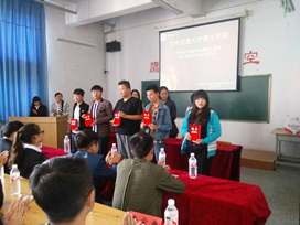2015年10月16日下午,艺术设计系在图书馆515教室成功举办了艺术设计系团学会换届大会及艺术设计协会成立大会。艺术设计系全体师生和各系团学会干部出席此次大会。大会顺利完成了新一届团学会干部工作交接,并宣读了新一届团学会工作规划,表达了自己对团学会工作的热爱与责任,赢得了在场师生的阵阵掌声。