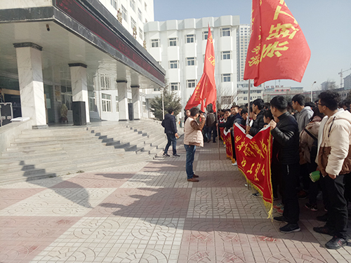 为了严肃考风考纪,加强青年大学生的诚信教育,2017年12月21日中午12:30分,兰州交通大学博文学院在南校区教学楼前广场举行“诚信考试”动员大会暨千人签名活动。我系由辅导员王振伊老师组织,16级艺术设计系广告班与工艺美术班学生携带系旗门旗参加了本次活动。