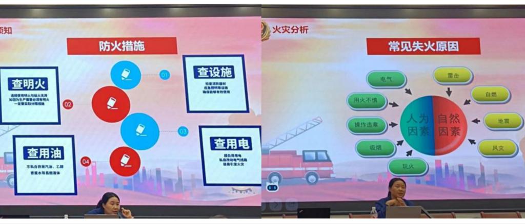 孙教员除了传授关于学校消防安全的知识以外,还向老师们强调平常生活中的安全小细节。比如做饭时锅着火了、如何预防燃气爆炸、灭火器的使用方法等问题都进行了详细的介绍。