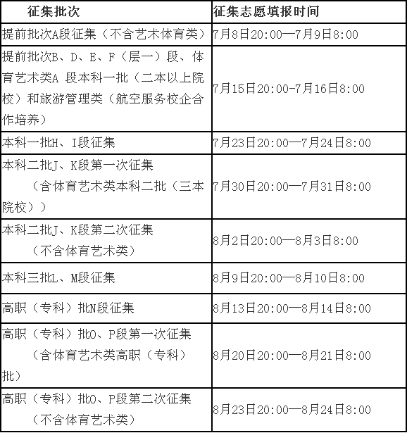 (四)征集志愿的时间安排